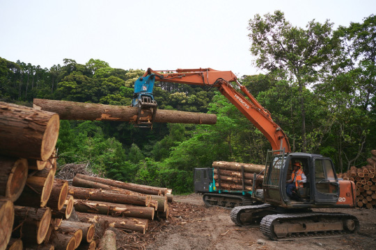 九州各地の市場や山林と連携し、50 年生以上の良材・直材を仕入れています。